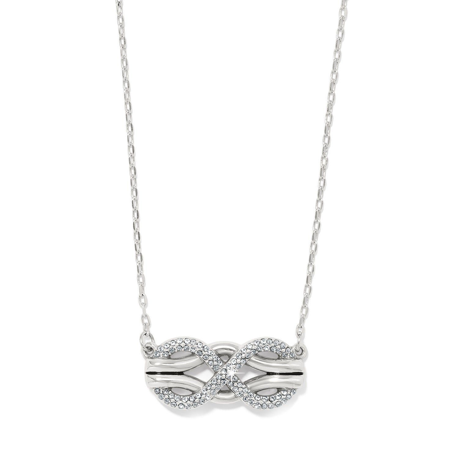 Add some sparkle to your style with the Interlok Luxe Necklace. Crafted with fine quality crystals and finished in silver plating, this necklace makes a statement. The lobster claw closure allows for an adjustable length of 16" to 18", allowing it to sit just where you want it.